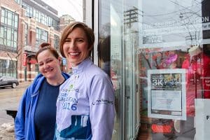 Filmmaker Kate McKenzie and Beaches Running Room assistant manager Terri Lancelotte prepare for the inaugural Secret Marathon 3K on March 7.