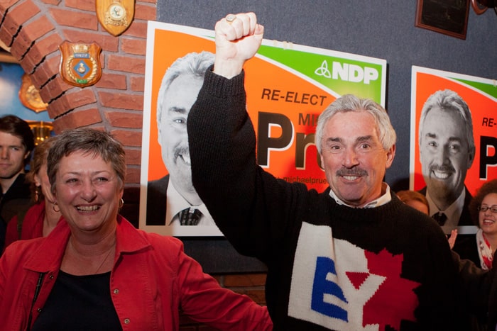 Beaches/East York MPP Michael Prue, along with Toronto Councillor Janet Davis, celebrates his re-election during a victory party at the Naval Club of Toronto. Photo: Phil Lameira / Beach Metro News