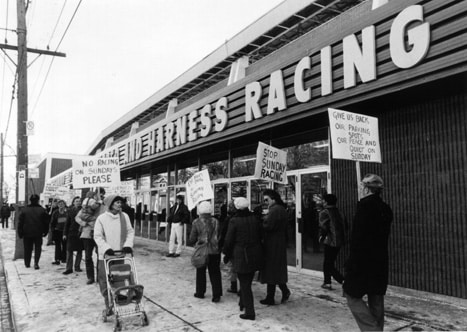 Adding to the traffic congestion on Queen, was Sunday racing at the Greenwood Racetrack. On Jan. 4, the first day of Sunday racing, 30 residents from the Beaches Triangle picketed the track, “to make public our opposition to Sunday racing,” said one of the organizers, Sandra Jackson. “One has only to recall the traffic congestion on Queen Street on Sundays last summer, to realize the chaos thousands of additional cars will create,” wrote Beaches-Woodbine MPP Marion Bryden.