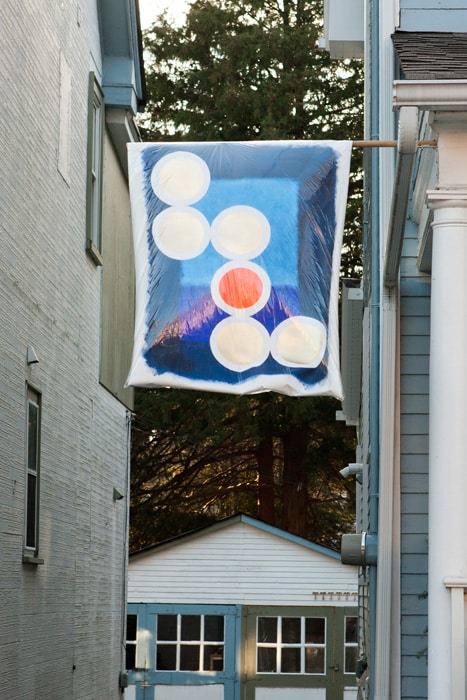 Laflèche said that many of the households are involving their children and grandchildren in creating these flags. “It’s a real community and family affair,” she said. The flags themselves are approximately one metre by 75 centimetres, and generally made of cloth. After that the sky’s the limit. Some will be sewn, some appliquéd, some printed. Some of the participants are professional artists, others regular families eager to join in the fun for a good cause. Each flag will be unfurled on its appointed day until by Dec. 25 the street will be festooned with colour.