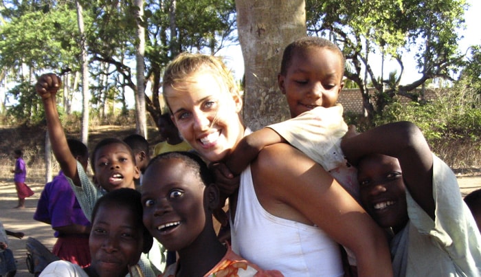 Kristy Hawke with Kenyan children during a trip to the village of Maweni.