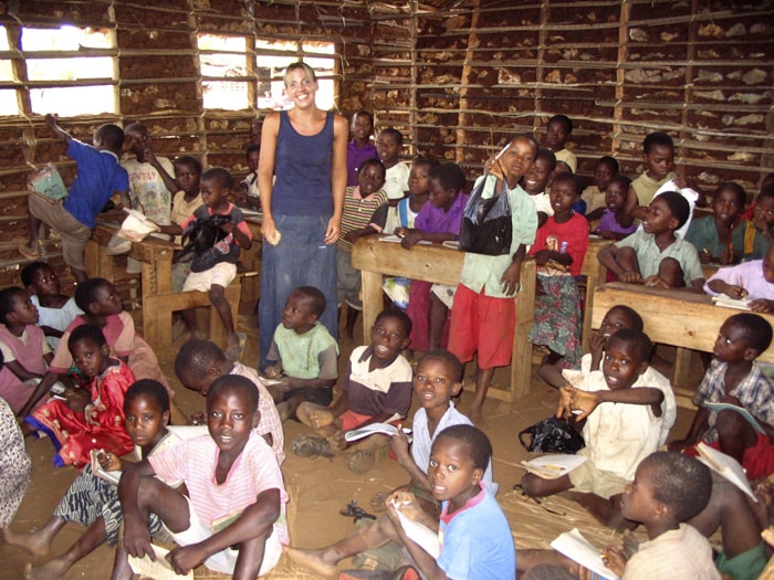 Amy Hawke in a classroom in Maweni, Kenya. Amy and twin sister Kristy started the charity Hope4Help to help build a school for orphaned children in the village.