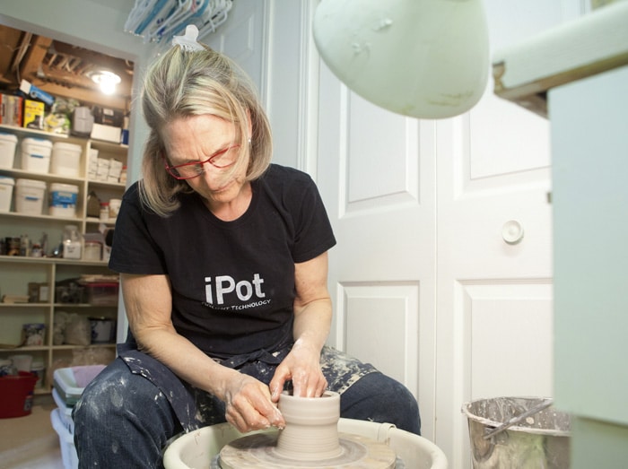 Potter Barbara Banfield works at her potter’s wheel in her home studio, ahead of the upcoming Beach Studio Tour. PHOTO: Phil Lameira / Beach Metro News