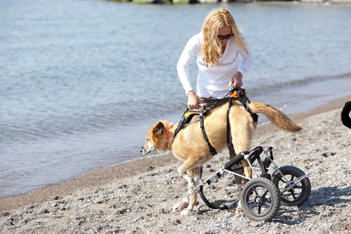 Lexie’s veterinarian suggested using a wheelchair to help her move around. Santini was open to the idea, and quickly found that she could still do normal things with her dog that she would otherwise not be able to, such as taking her to the beach.