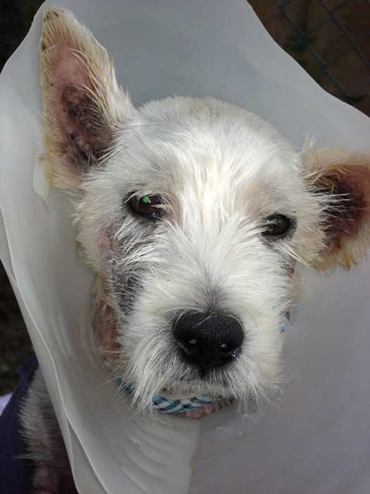 Westies are prone to skin conditions, often thyroid-related. Fortunately, they can be resolved with conventional treatment, a breed-specific diet and homeopathic supplements. Sammy, however, benefited from none of these. After languishing untreated in the Taiwan shelter for six months, his condition had become near critical. But Taiwan is not without its own animal heroes. The Taichung Universal Animal Protection Association discovered Sammy and immediately swung into action. With a growing number of unwanted pets in Taiwan, they looked to the west for his salvation.
