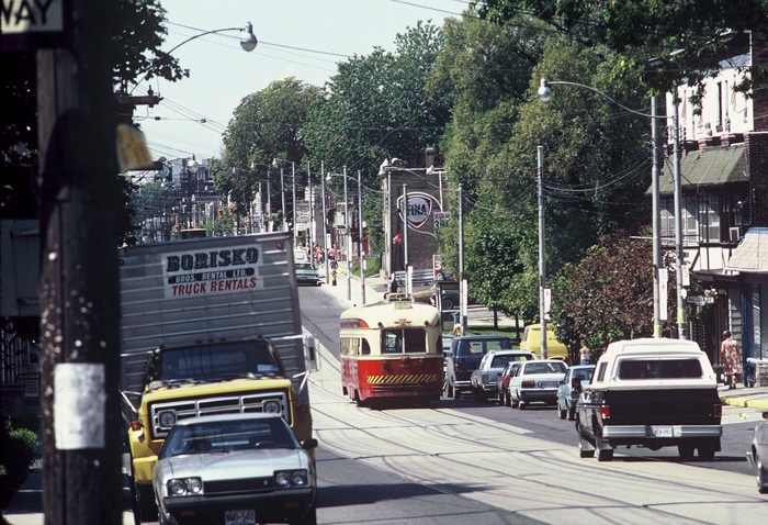 This is a long lens photograph of Queen Street East, looking west from MacLean Avenue. This image was taken in the late 1970s. The FINA (Finest in North America) gas station used to be on the northwest corner of Glen Manor and Queen. There is a Swiss Chalet at that location today. Special thanks to Pete Coulman for the photo. Do you have an old photograph you’d like to share? Please call me at 416-390-2527.