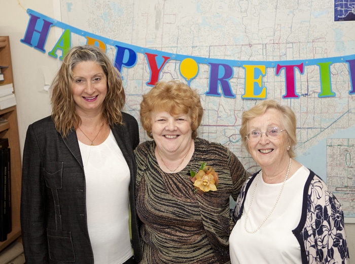 Three generations of Ward 9 News and Beach Metro News Ad Managers: Past manager Brenda Dow, right, outgoing Dianne Marquardt, centre, and incoming Sherri Stelmack, left, at Marquardt’s retirement lunch.