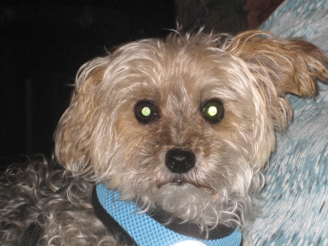 Joey is a 9-year-old Yorkshire Terrier/Poodle mix at Happy Tails Rescue, www.happytailsrescue.ca, carol@happytailsrescue.ca. Are you looking for a lazy-eared, low-key, lap-loving lad capable of restoring order to your life with just one cuddle? Then this is the dishtowel dog for you.