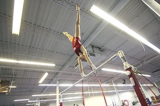 Later, watching her daughter vault into mid-air twists and flips, Lynda Rinkenbach said although it does take real juggling to balance her training with school, Megan’s gymnastics have made her a better student.