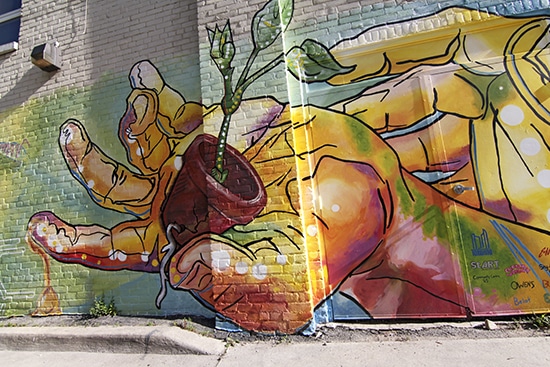 Down an alley behind Danforth Avenue’s Dixon Hall, a huge new mural called Bee Haven is cross-pollinating with one couple’s Alleyway of Dreams.