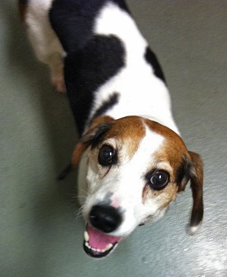 Last but not least, I give you Mickey Malarkey – our latest rescue case here at Big on Beagles Rescue. He went from the cold concrete confines of an outdoor pen in February to the lap of luxury in May – quite literally, as proven in this picture of him enjoying the view at lap level courtesy of my doting step-daughter.