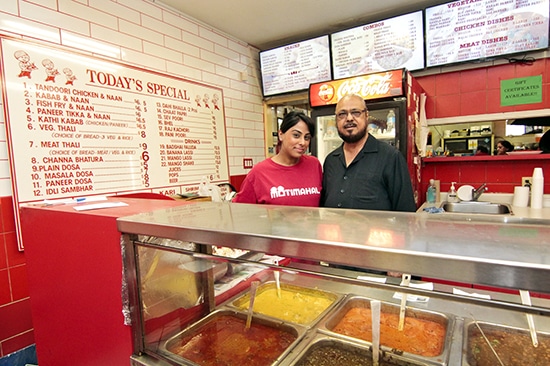 Gurjit Chadha and his daughter Neelu Sabharwal stand behind the counter of MotiMahal, which Chadha and his wife opened in 1975. “There’s a lot more diversity here now,” said Sabharwal. “You don’t see just Indian people — it’s a full mix of cultures, which is the best feeling.”