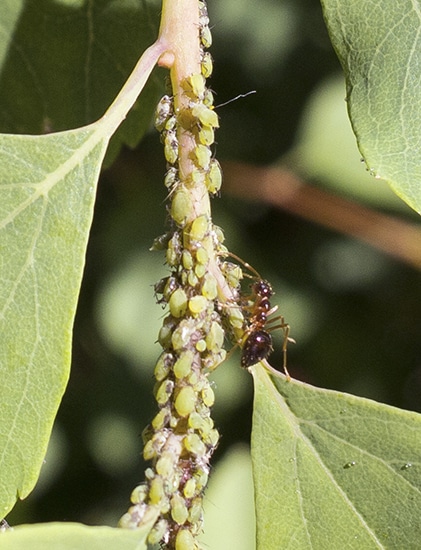 As fascinating as this insect farming activity is, large colonies of aphids don’t do much for plant health if they are not controlled, since the thick deposits of honeydew will seriously damage and deform new growth. Their voracious appetite and piercing beak can also disrupt circulation of phloem vessels and act as a vector to introduce viral and bacterial infections.