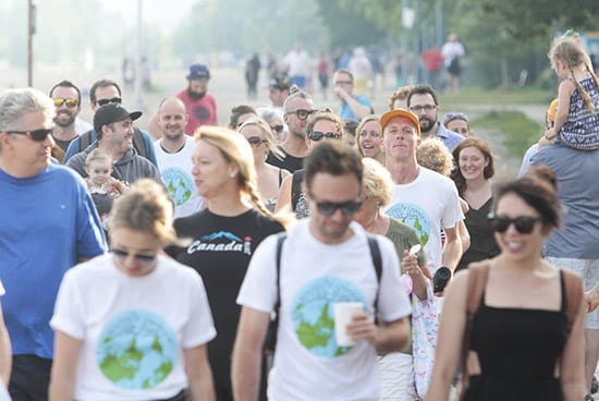 Beach-born explorer Markus Pukonen, wearing the orange cap at right, walks down the Balmy Beach boardwalk with friends and family on his birthday, July 13, before hopping in a canoe to launch a five-year, 82,000 km trek around the world to support a better environment. To follow Pukonen’s journey or make a donation, visit routesofchange.org.