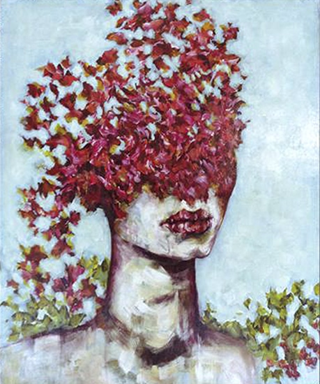 Her paintings, often incorporating children, range from the whimsical to the darker spectrum of the imagination. Familiar imagery from children’s stories and fables populate the dream scenes in the acrylic paintings in the Innocent when you dream series.