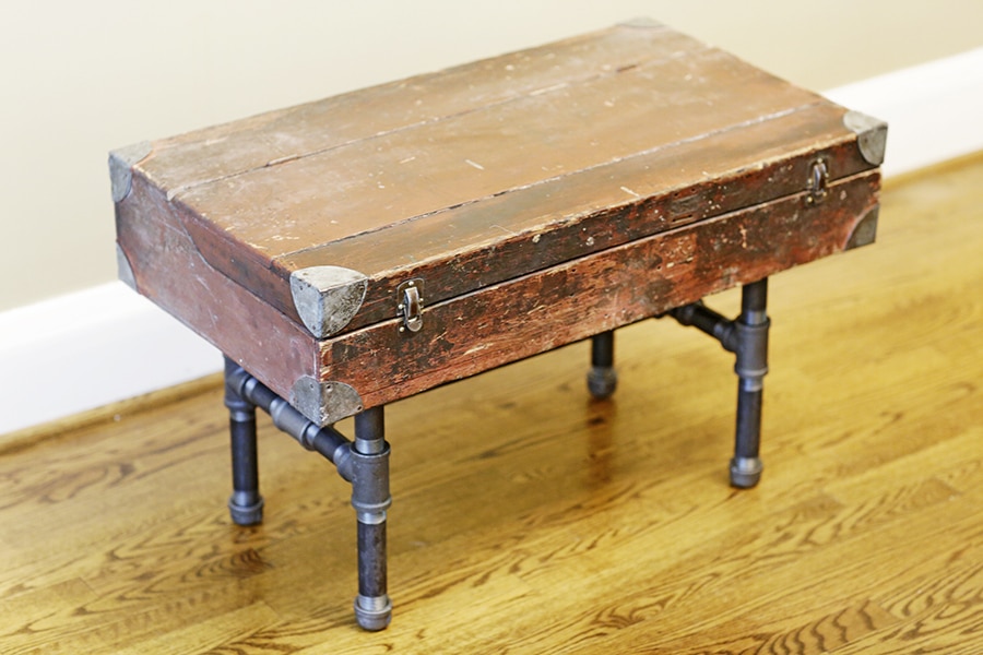 You now have a custom table that is unique, sturdy and really easy to make. You can even add a shelf below if you want more storage. You can use these basic instructions to make any size and height of table for your home. For a really great table, find a vintage trunk or suitcase from a flea market or antique shop: built-in storage AND a table!