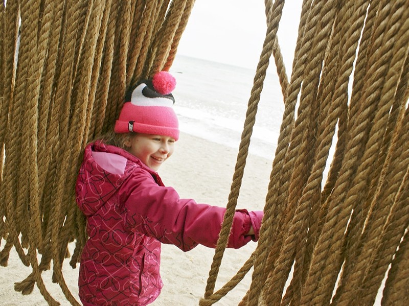 Isla Bunga hangs out in Montreal-based MUDO’s Floating Ropes installation at the Winter Stations launch Feb. 15, 2016.