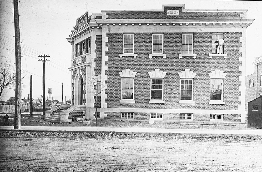 Community Centre 55 is housed in a former police station, built, as seen here, in 1911. The building was constructed on the site of the original East Toronto town hall.