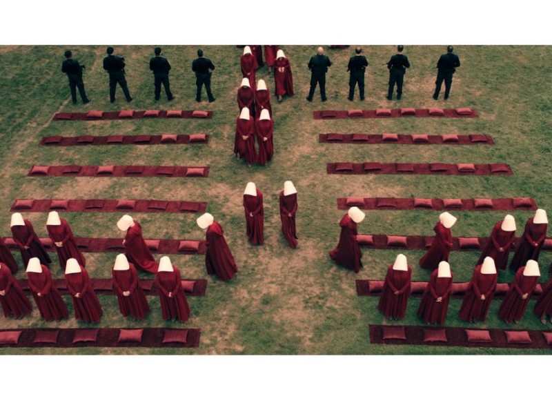 Though filmed around Toronto and Cambridge, Ontario (standing in for Cambridge, Mass.) the setting of Atwood’s 1985 novel is New England in the Republic of Gilead. While set in the near future, the uniform red robes and white bonnets worn by the handmaids harken back to a repressive past. Atwood was inspired by her studies of 17th century America and its Puritan values.