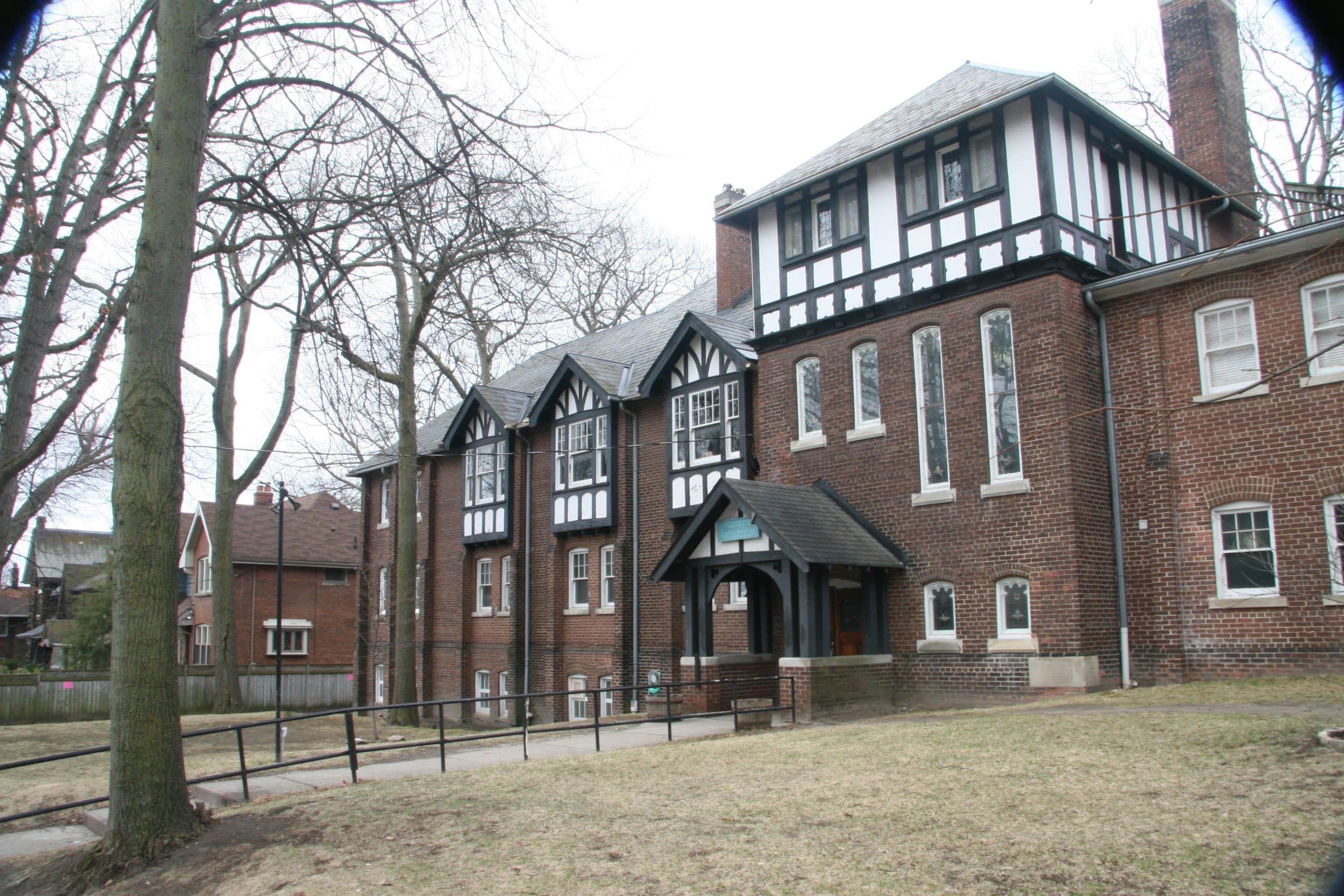 Rev. Lucy Reid of St. Aidan’s says that the scene alarmed parents unaware of the filming and caused “quite an excitement here” as the young handmaids-in-training were led into the building by the armed guards.“The ground floor level of the Memorial Hall was set up as a dormitory, while the gym below was staged as a classroom,” she says. “Our somewhat dilapidated building apparently was ideal.” The Tudor-style hall was dedicated in 1923 as a memorial to those from St. Aidan’s who lost their lives in the First World War.