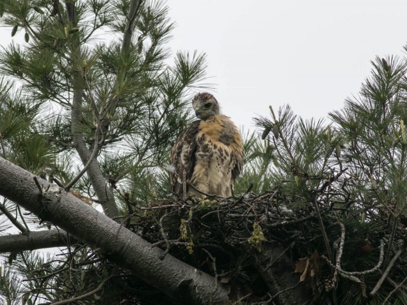 Red-tailed hawks bring huge branches to a tree to start their nests. Just like the blue jays, they break specific sized branches to fit the nest, which the female orders together like she was building a log cabin. Once the nest is built the female then tears bark off a tree to put on the bottom of the nest. Why do they do this? According to an old friend, they line the nest with bark because it acts as a natural source of insect repellent.