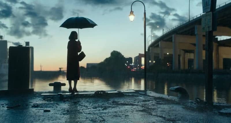 Water is everywhere in del Toro’s other-worldly fairy tale, a girl-meets-buoyant sea creature love story. Toronto is magically transformed into a rain-soaked Baltimore at the height of the Cold War in 1962.