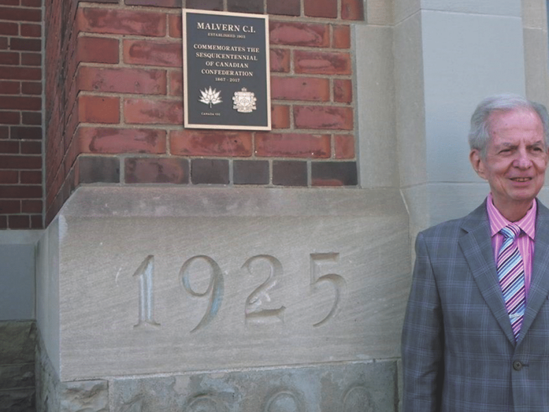 We wanted to welcome our new president and asked him to introduce himself to the Beach Metro News readership. In the photo, he is seen standing beside the new sesquicentennial plaque funded by alumni donations. The plaque is a lasting reminder for future Malvern students that we had marked a significant occasion in the history of Canada. The new maple and other trees, gardens, and plantings around the school are also a tribute to the 150th anniversary of our country.