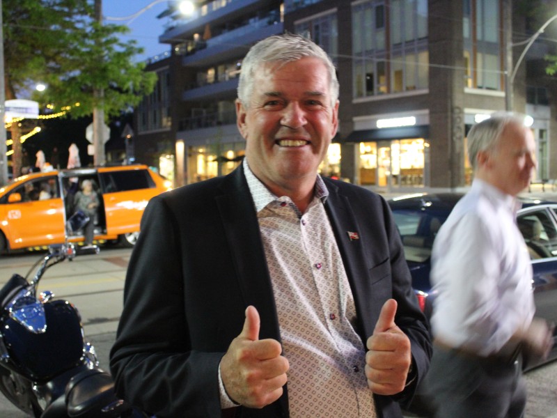 Arthur Potts enjoying a later moment outside The Beach House Bar and Grill on Queen Street East on provincial election night.