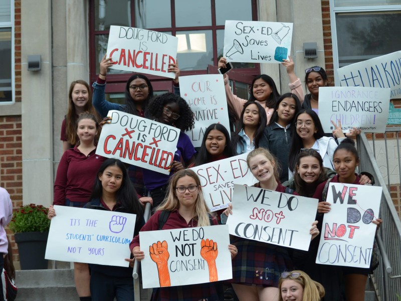 On Friday, September 21, students from about 90 different schools across Ontario participated in a provincial wide walkout to protest the recent changes to the curriculum which includes the reinstatement of the outdated 1998 sex education curriculum which eliminates from the discussion topics such as same-sex marriage, gender identity, the importance of consent, cyberbullying, and sexting.