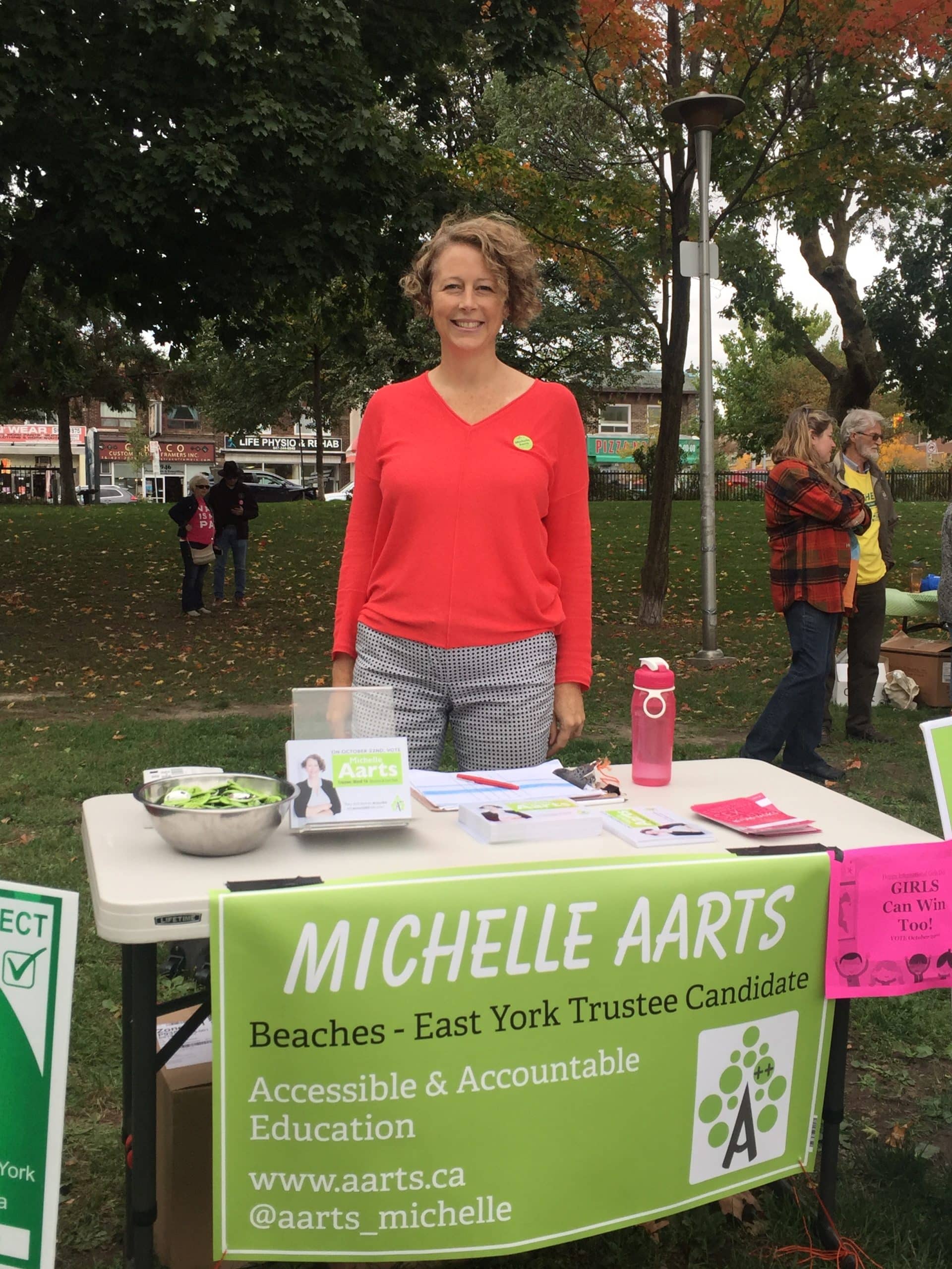 Michelle has a Ph.D. in biomedical sciences and a career in neuroscience research, teaching and consulting. Over the last decade, she has dedicated her time to local schools, community agencies, equity initiatives, and to the TDSB itself to support education. Aarts is running for trustee so she can be the strong independent voice the school system needs to support and protect TDSB students and to advocate their needs to all levels of government.