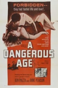 Furie figured that if other countries could tell their stories, then why not us? He scraped up financing from family and friends and made the black and white feature A Dangerous Age in 1957 at Meridian Studios. The tale of two young people in love was based on his failed elopement when he was 20 years old.