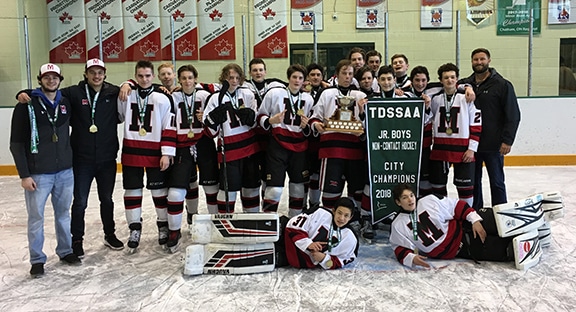 The Malvern Collegiate Institute Black Knights Junior boys hockey team won the Toronto District School Board city championship with a thrilling victory over Northern Secondary School Red Knights that took three periods of overtime and shootout before finally being decided.
