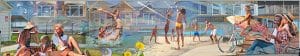 “All three designs depict activities around the Beach neighbourhood with a focus on a healthy active lifestyle. All three reference the grocery store as the heart of the neighbourhood shown in the image of the young family enjoying a picnic on the beach with a Foodland grocery bag in the foreground. This not only shows the Foodland line of products as part of the Beaches lifestyle, but the Foodland logo on the grocery bag with the “Better food for all” slogan can also be used as the logo signature in the mural,” he explained.