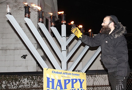 A giant menorah will be set up and lit starting at 6:30 p.m.