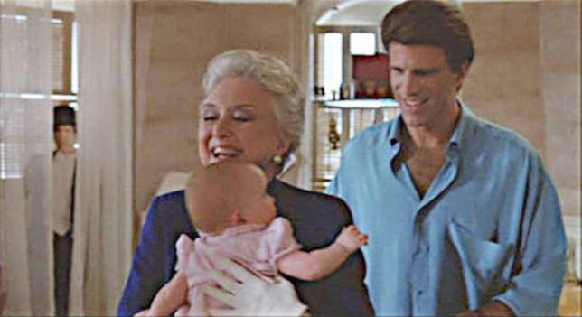 At about the one-hour mark Ted Danson and Celeste Holm walk across a room carrying the baby Mary. When the camera shifts you can briefly see a figure at the curtains by the window. Some people thought it looked like a boy had wandered onto the set. Video sales boomed when a silly rumour circulated that this was the “ghost” of a boy who had been killed in the “New York” apartment. Like most urban legends there was an ordinary explanation for the “ghost” image.