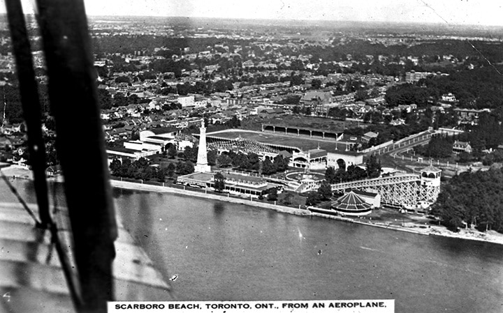 Above is a postcard of the Scarboro Beach Amusement Park. The image was captured from a plane (see the wing mounts on the left) when aviation was in its infancy; for that matter, aerial photography as well.