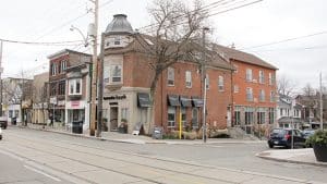 Photo above from 2006 shows the building at the corner of Leuty Avenue and Queen Street East. Inset photo shows same building today. Photos by David Van Dyke.