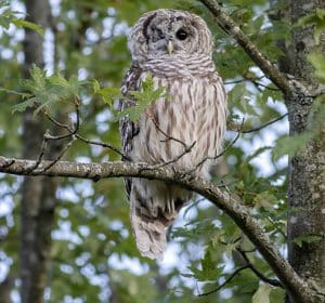 Meet Nobel: a one-eyed barred owl. Nobel was hit by a car, on Christmas day of all days, a few years back. Thanks to the staff and doctors at Shades of Hope the Owl Foundation, Nobel was given a second chance.