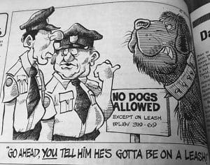 It featured what was to become a familiar theme for the East Toronto resident who is now in his fifth decade of cartooning for the paper: An off-leash dog in the Beach.