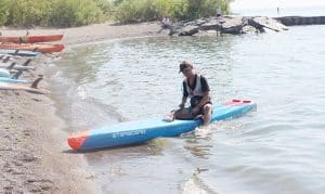“This lake is a big thing,” he said as he spoke to reporters and well-wishers shortly after making his landing on the beach. “This was the first but not the last attempt by a person with a disability to cross Lake Ontario.”