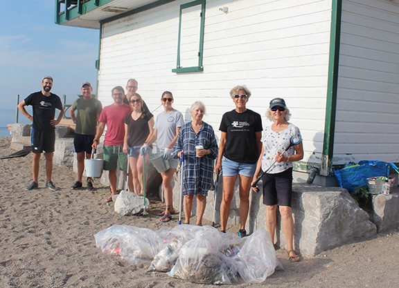 Toronto Lakefront Community members Sweep and Swim near Leuty Lifeguard Station