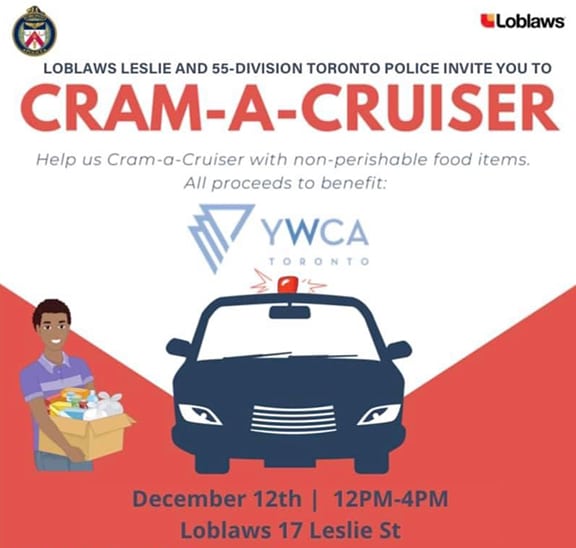 The Cram-A-Cruiser event will take place at the Loblaws at 17 Leslie St., between Eastern Avenue and Lake Shore Boulevard East, between noon and 4 p.m. on Sunday, Dec. 12.