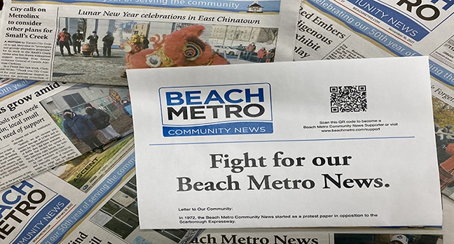 Along with coming by to the office you can also support us by making a donation online at www.beachmetro.com/support or through the mail to 2196 Gerrrard St. E., Toronto, ON, M4E 2C7.