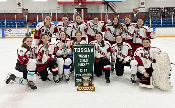 The Malvern Collegiate Institute Black Knights girls varsity hockey team are the city champions for the 2022 season.