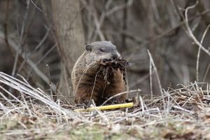 The same day I saw a groundhog who was gathering nesting material for his den. Now I have never seen this before so I was watching fascinated by the way he would pick up a pile of leaves and head back into the woods.