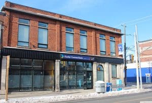 The Foster Connections building on the southwest corner of Main Street and Gerrard Street East.