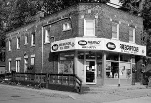 Things are different now from how they were in 1952, but not so with much of the exterior of this pharmacy which is located on Kingston Road just north of Dundas Street East.