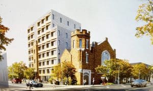 This artist’s image shows the eight-storey addition to the back of Danforth Church at the southwest corner of Bowden Street and Danforth Avenue.
