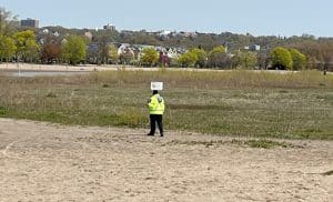 Last Wednesday, May 10, morning, Beach Metro Community News saw a city bylaw officer walking the area at the west end of Woodbine Beach and he told the owner of a small dog running free that it needed to be leashed and not on the beach.