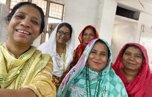 Nurjahan Begum, in yellow, with some of the local workers who she supports in Bangladesh with her clothing company Progoti. Photo: Submitted.
